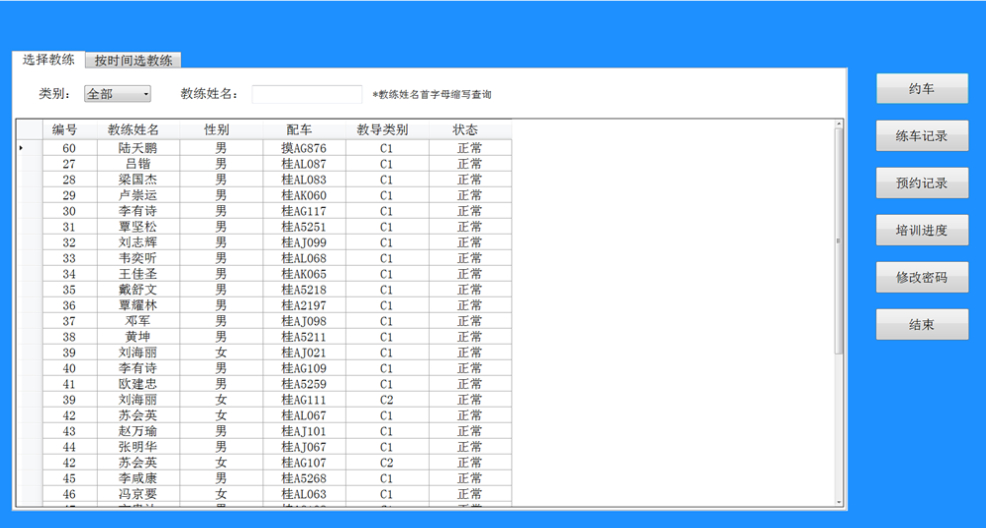 2、對學員進行人工預約處理:根據教練員的培訓時間段幫助學員進行預約培訓